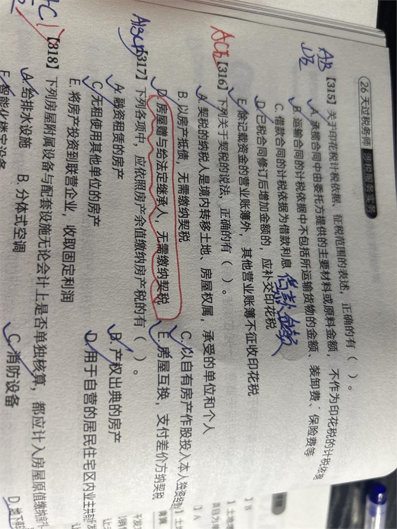 D选项的说法过于绝对和笼统。只有将房屋赠与给“法定继承人”中的“配偶、子女、父母、兄弟姐妹、祖父母、外祖父母”时,才免征契税。 而选项D没有指明是“法定继承人”中的哪些人,容易引起误解。