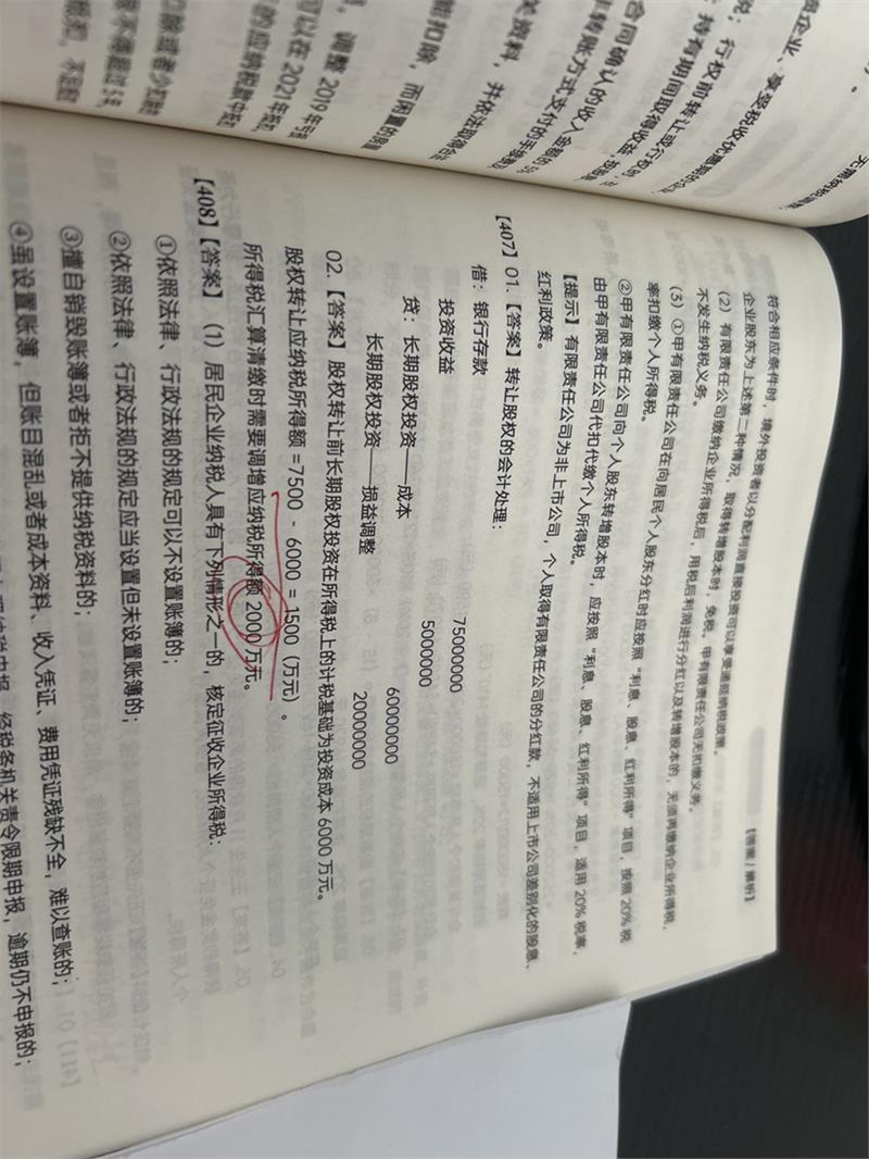 因为税法不承认权益法下已确认的 2000 万收益(当时已做过纳税调减),现在转让时,这 2000 万必须调增回来。